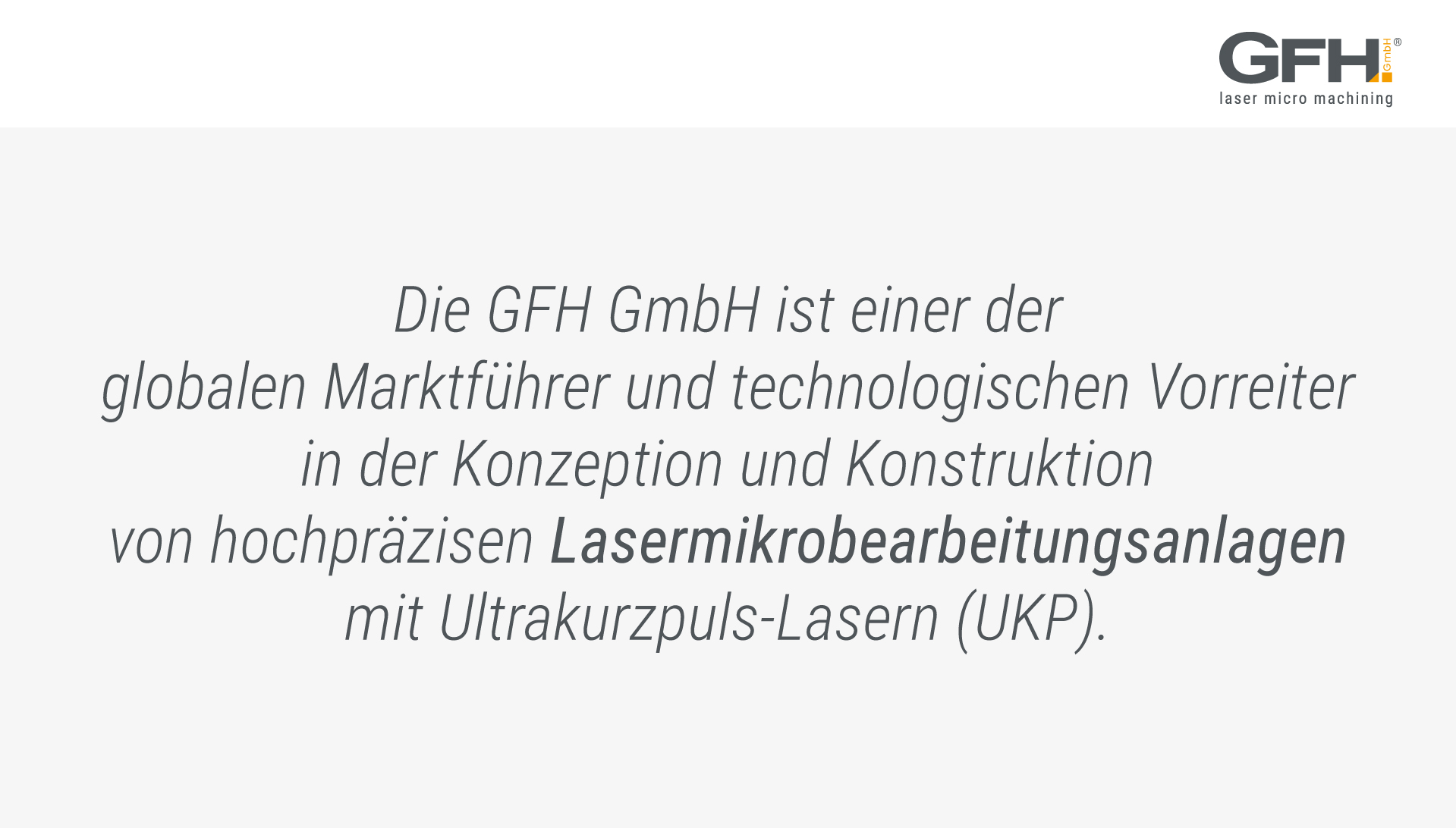 Die GFH GmbH ist einer der globalen Marktführer und technologischen Vorreiter in der Konzeption und Konstruktion von hochpräzisen Lasermikrobearbeitungsanlagen mit Ultrakurzpuls-Lasern.
